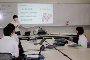 2月19日(日)上部児童センターで「むかしあそび大会」が開催され、南高校から3年次生6名がボランティアとして参加しました。手回しゴマ・折り紙相撲のコーナーで一緒に遊んだり、ビンゴゲームを実施したりして、元気な子どもたちと一緒に楽しい時間を過ごしました。また、イベント後に、ライフスタディⅡ家庭科グループが製作した「寝相マット」の贈呈も行いました。